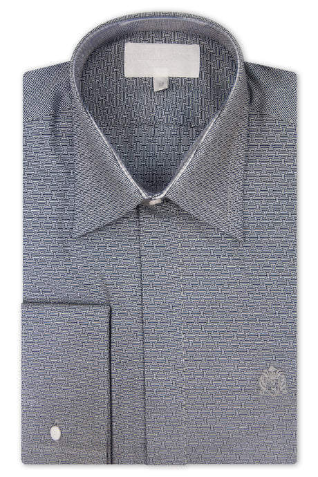 White & Black Geometric Pattern Forward Point Collar Shirt