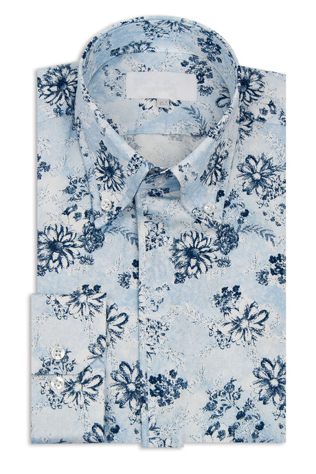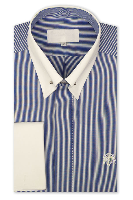 Indigo Star over White Forward Point Collar Shirt