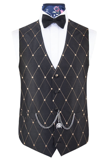 Dark Brown with Diamond Pattern Silk Waistcoat -