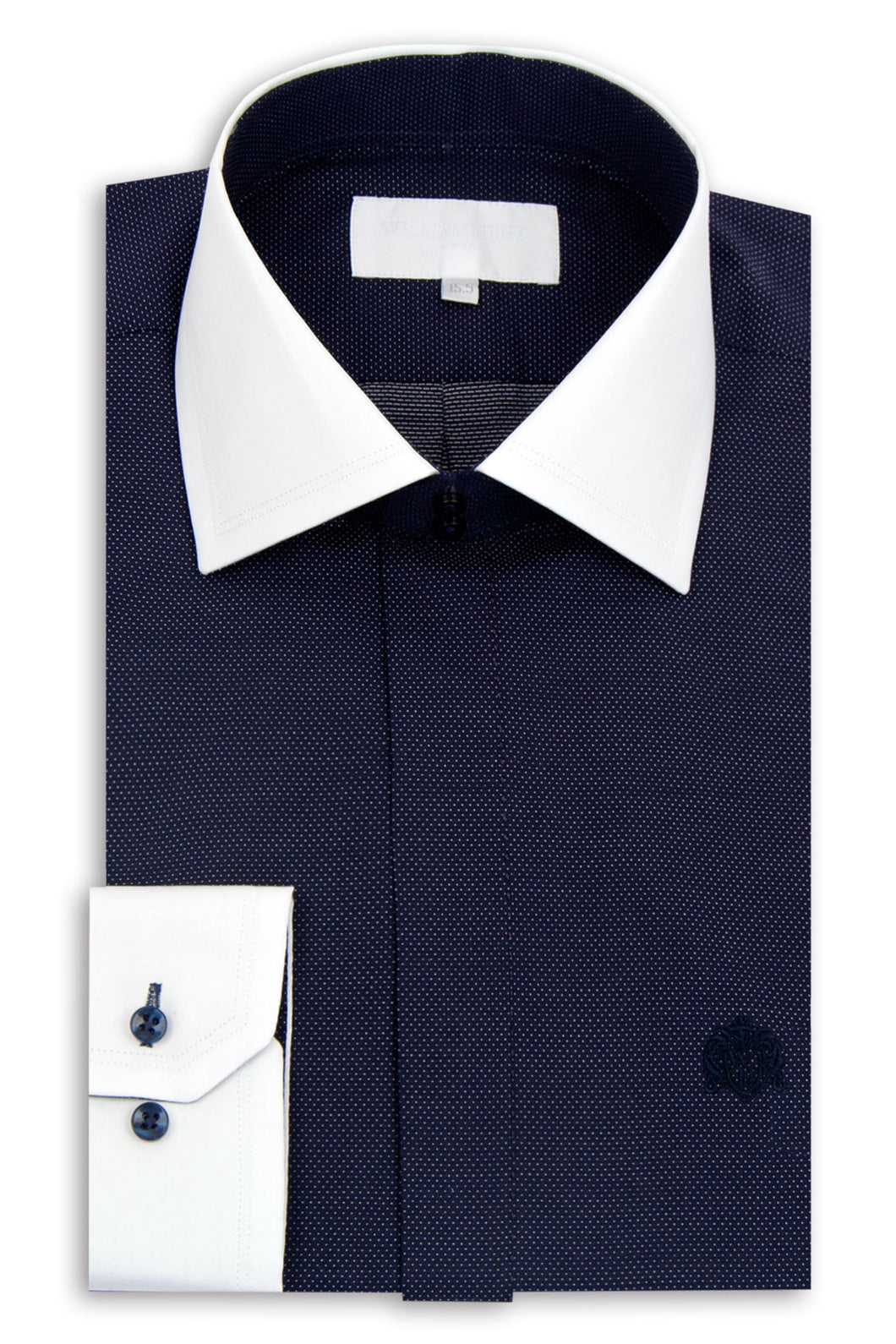 - Navy Cutaway Collar Shirt with White Pin Dot