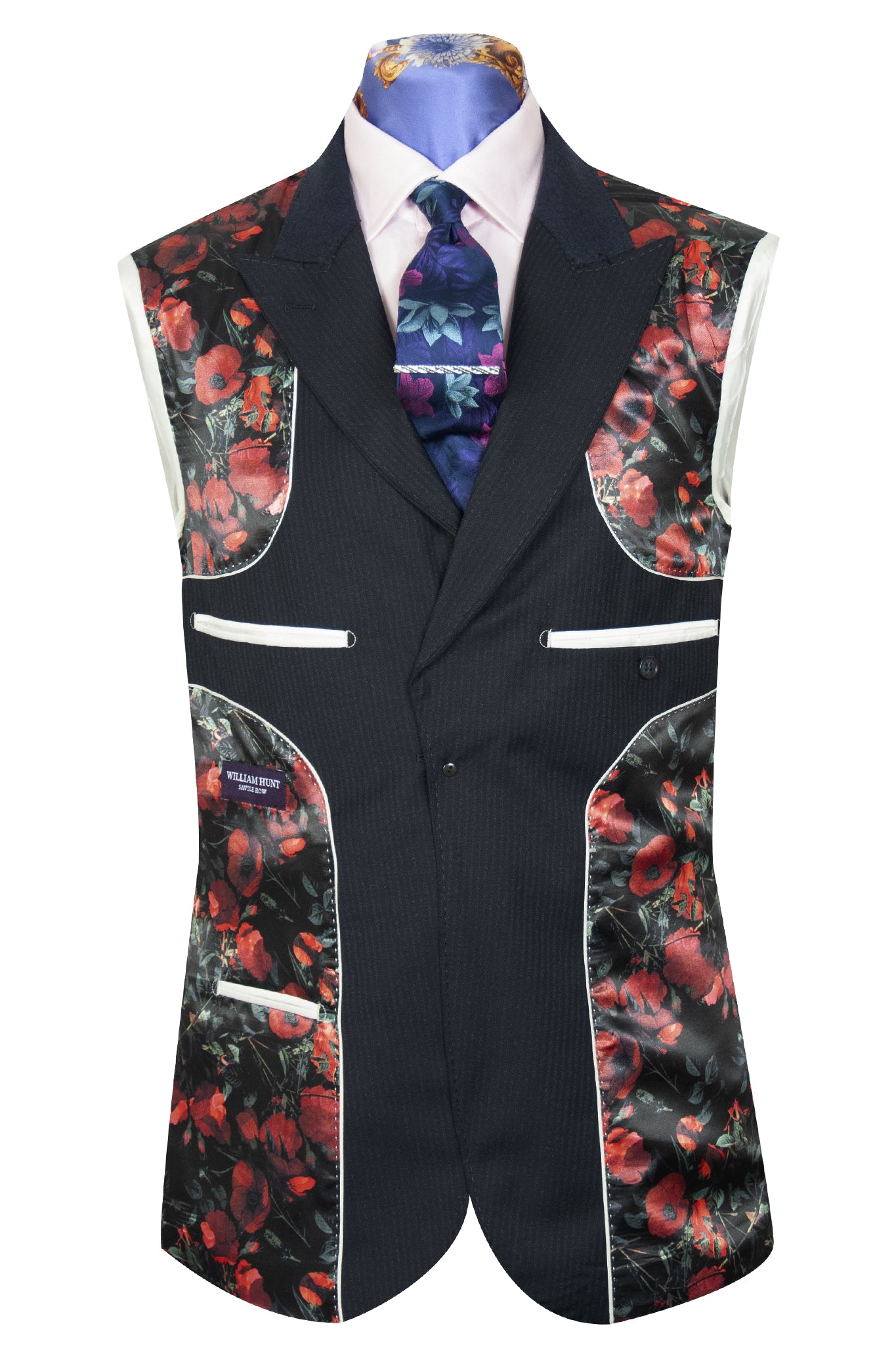 • Exaggerated peak lapel with two straight cut front flap pockets